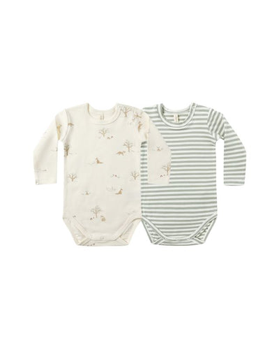 Jersey Bodysuit, 2 Pack || Fox Land, Fern Stripe (12-18Mo)