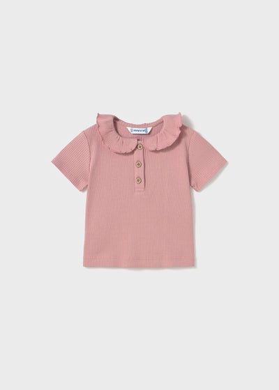 Baby + Girl Ribbed Polo with Ruffled Collar - Rosy