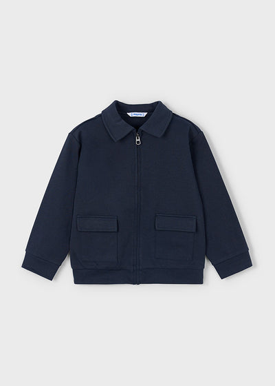 Long sleeved Jacket for boys. Shirt collar. Front, central zip fastening. Classic pique fabric, which is both versatile and durable. Front pockets.