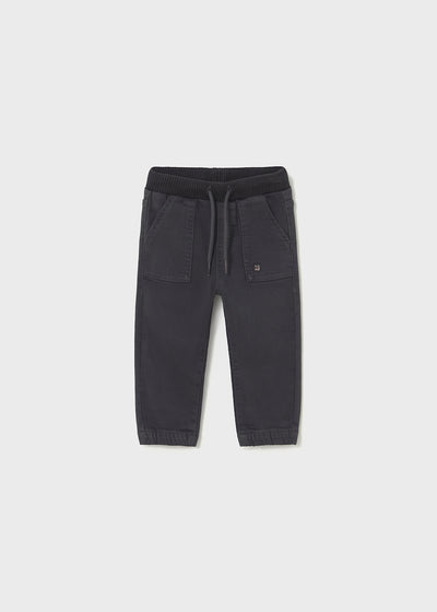 Joggers for boy, baggy at the top of the joggers but narrower towards the ankle. They are perfect for sporty looks, reflecting the influence that sport has on everyday fashion. Elasticated waistband with adjustable drawstring. Comfortable and resistant twill fabric. Elasticated hem for a better fit. Functional front pockets. Functional back pocket.