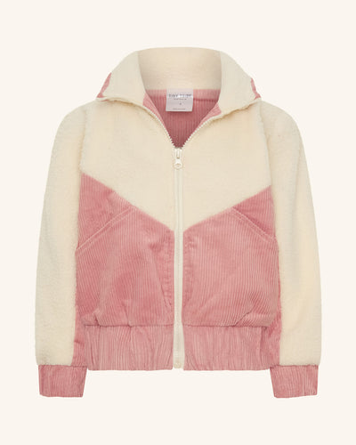 Our New Corduroy Sherpa Collar Jacket in dusty rose features a front zip with side pockets. Crafted from a combination of corduroy and soft sherpa, the composition provides comfort, warmth and durability. Finished neck and sleeve detail. Designed in Australia.