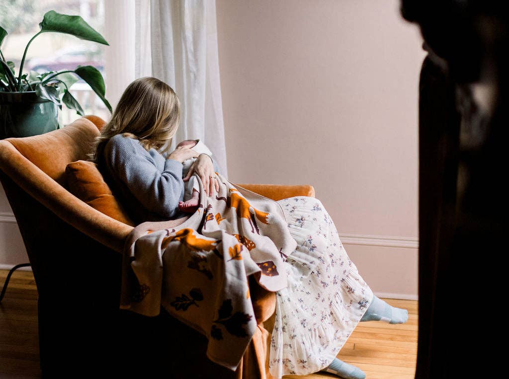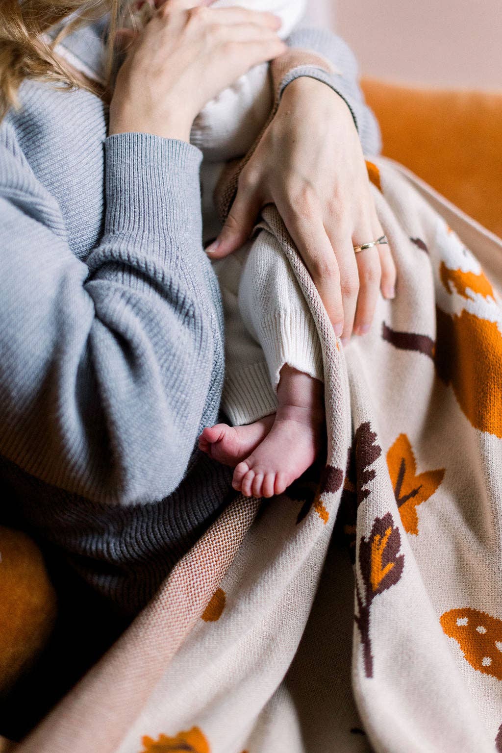 A cozy companion for every season, this cotton knit blanket brings warmth and charm to your little one’s world. The design features a cheerful fox leaping through a woodland of mushrooms and autumn leaves — a playful, nature-inspired print in rich, earthy tones.
