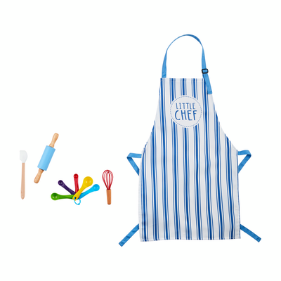 Kids' Cooking Set. Real tools for real cooking! This delightful set is perfect for little chefs eager to explore the culinary world. It includes a child-sized apron to keep clothes clean while cooking up a storm. The rolling pin is designed for small hands, making it easy to roll out dough for cookies or pizza. The whisk is perfect for mixing ingredients, while the spatula helps in flipping pancakes or serving up delicious treats. A set of five measuring spoons ensures precise measurements for any recipe. Suitable for ages 3 and up, this set encourages creativity and learning in the kitchen. Made from durable plastic, it's safe and easy to clean, providing endless fun and educational experiences for young cooks.