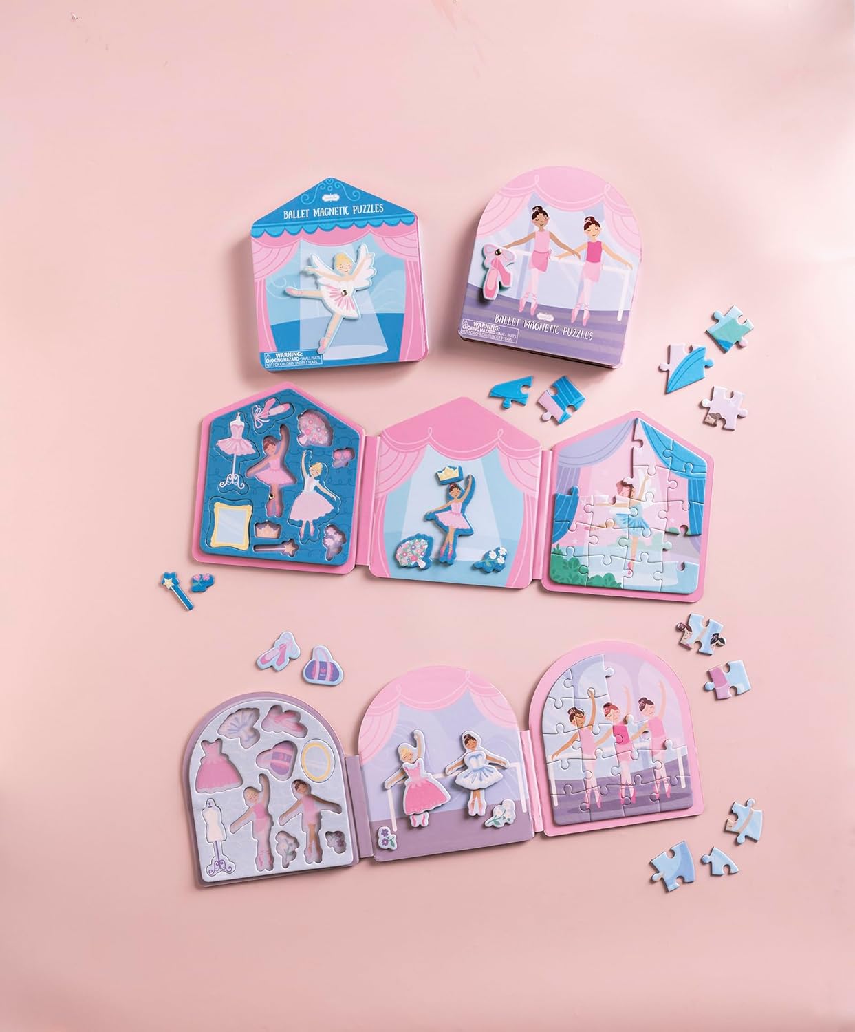 Ballet Studio Puzzle Book offers a delightful and interactive experience for young ballet enthusiasts. This magnetic puzzle set features a beautifully illustrated ballet studio scene, complete with dancers, props, and accessories that can be arranged and rearranged to create endless imaginative stories. The magnet pieces ensure that everything stays in place, making it perfect for travel and on-the-go fun. Designed for children aged 3 and up, this compact puzzle book measures 7 1/2" x 6 1/2", making it easy to carry in a bag or backpack. Crafted from durable paper, it promises hours of entertainment while encouraging creativity and fine motor skills. Ideal for keeping little ones engaged during long journeys or quiet afternoons at home.