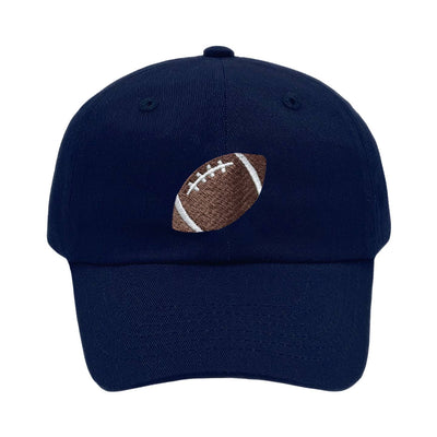 Our bestselling Game Day Collection just got a colorful dose of Football hats ready to take your little ones from the stadium to the sidelines in the sweetest style. Navy Baseball Hat with football embroidery.