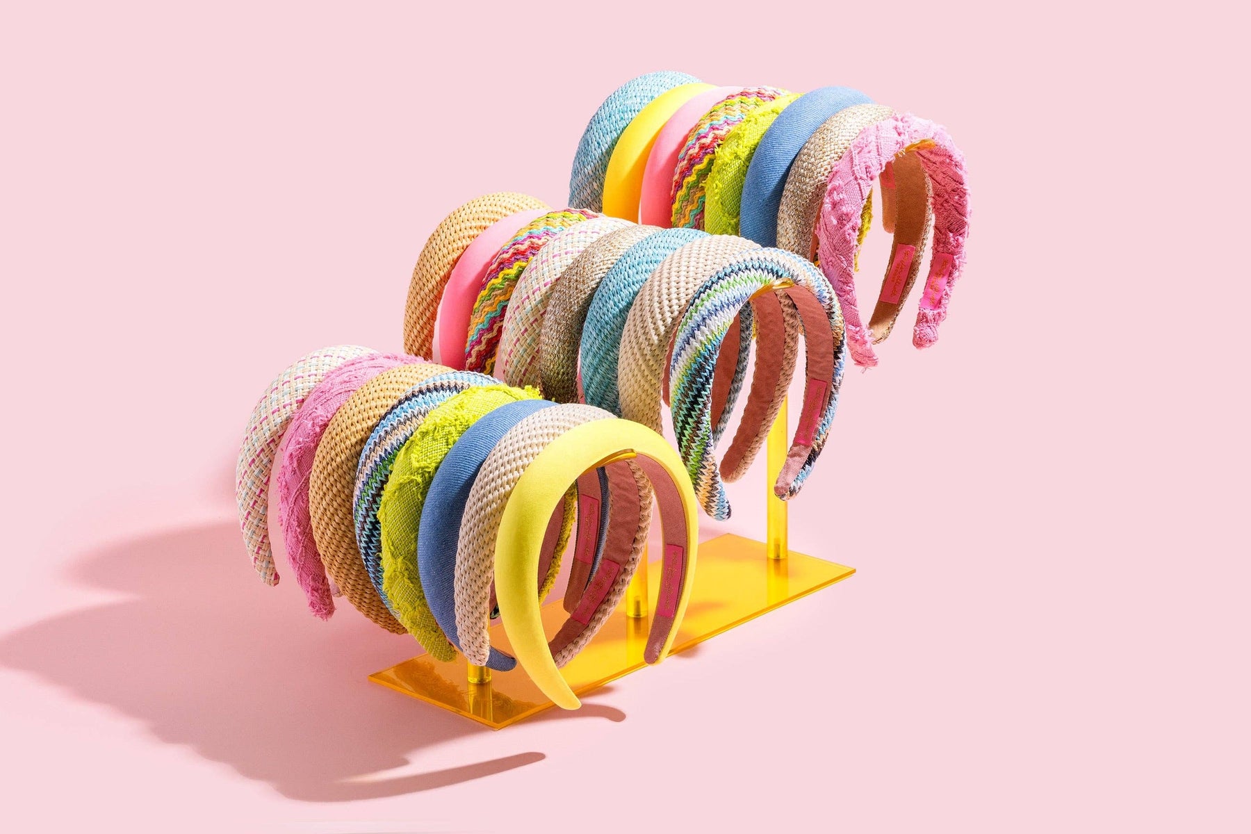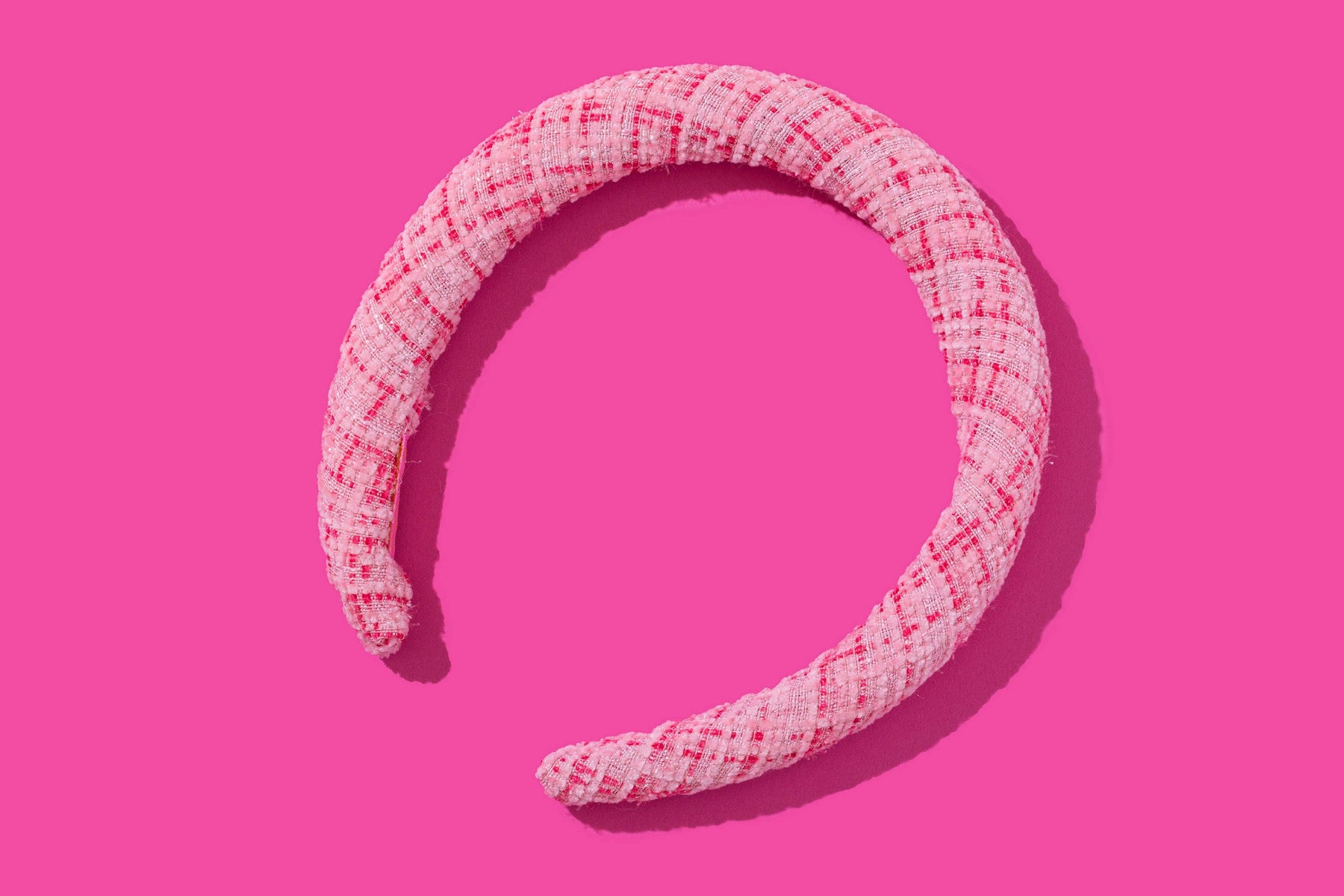 With vibrant colors and unique textures, these headbands are designed to make a statement and complement any outfit. Ideal for fashion-conscious customers, Taylor Elliot Designs headbands offer both comfort and chic appeal, making them a must-have addition to any store. Details ♥ .59" thick padding height ♥ .75" width ♥ Pink tweed fabric ♥ Imported