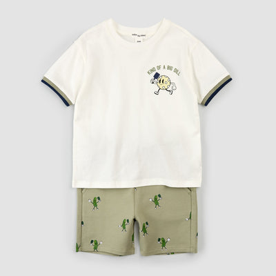 Game, set and ready for fun, this quirky shorts set uses our playful Pickleball Boy print on the shorts and our ‘Kind of a big dill’ motif on the top. There’s a ribbed neckline and contrast hems on the sleeves to create a sporty feel while the French terry shorts have an elasticated waistband for easy comfort. Ideal for tiny champs, the set is light and comfortable for all-day wear.