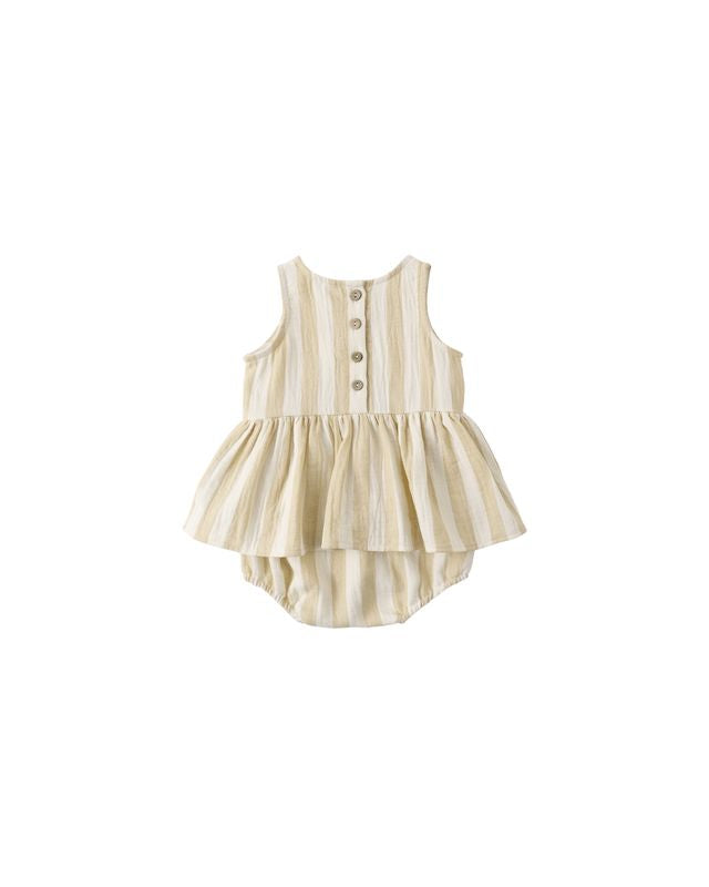 Skirted tank one-piece in our organic cotton gauze fabric, with a button back closure and snaps at the bottom for easy changes.