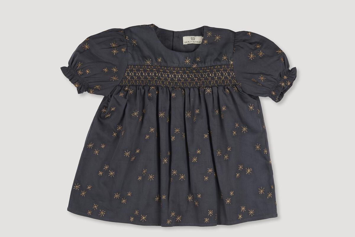 Perfect for ceremonial and festive seasons, crafted in 100% Cotton Satin with celestial embroidery in Stormy Blue.