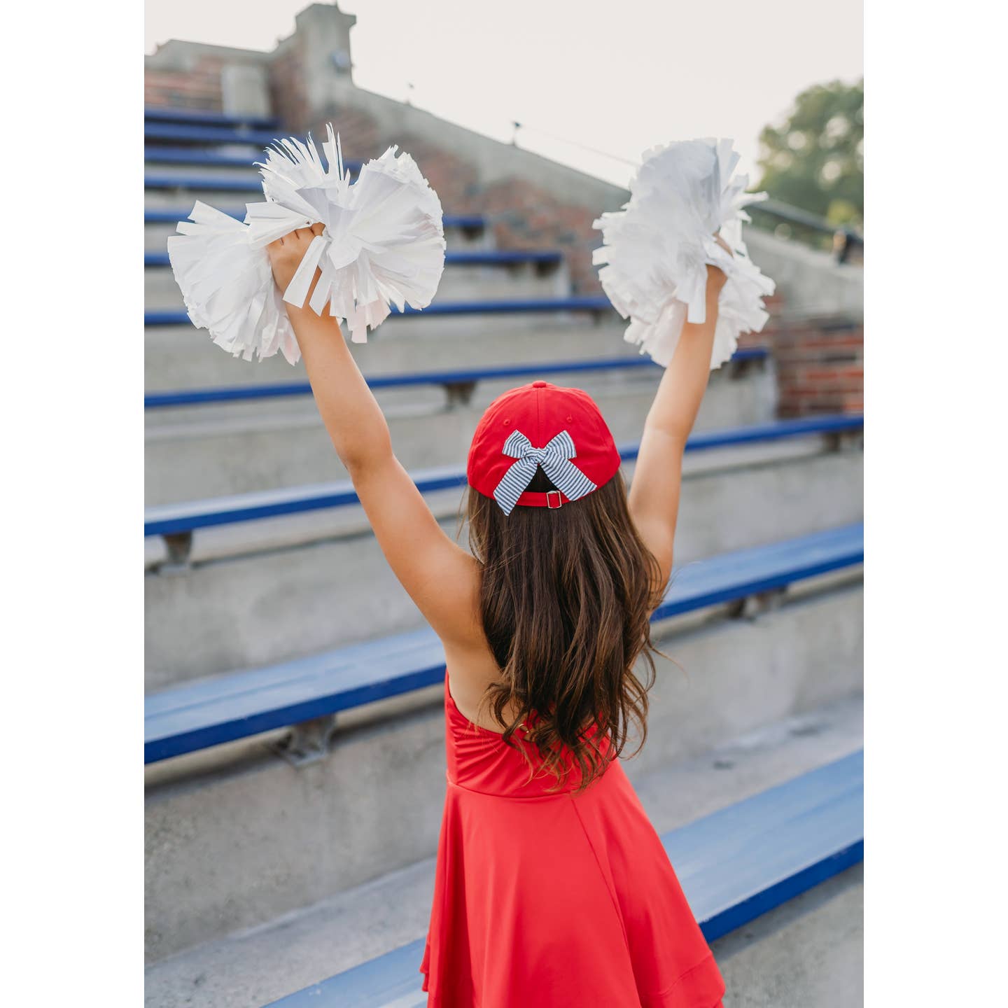 Gear up for game day in the most fun, feminine, and functional way, as our signature Bow Baseball Hats are reimagined with Officially Licensed designs sure to show off team spirit. From the sidelines to the stadium, seersucker bows create the perfect girly accent to a timelessly traditional and sun-protecting solid sportswear silhouette. Features a traditional six-panel, soft-structured fitted cap construction and an adjustable, tuck-strap closure.